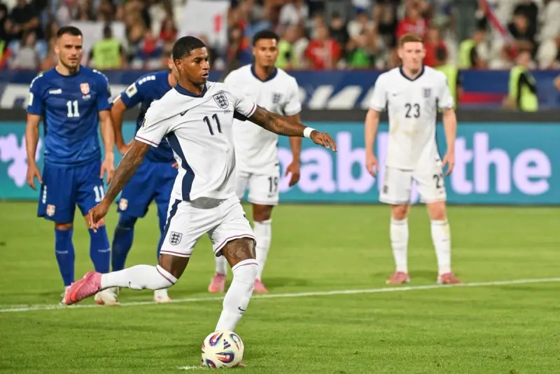 واختتم ماركوس راشفورد المهرجان التهديفي من ركلة جزاء في الدقيقة 90، حصل عليها المهاجم أولي واتكينز بعد تدخل صربي متأخر.