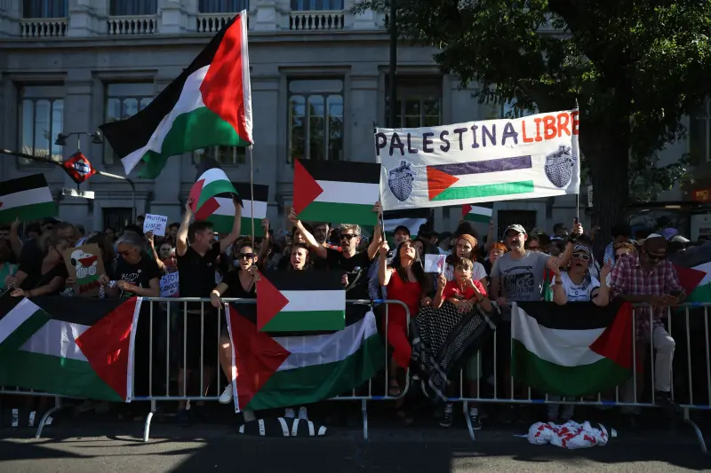 نزل إلى شوارع مدريد يوم أمس الأحد، أكثر من 100 ألف متظاهر مؤيد للفلسطينيين في المرحلة الأخيرة لطواف إسبانيا للدراجات الهوائية في ذروة تحركهم الذي بوشر قبل 3 أسابيع، احتجاجًا على مشاركة فريق إسرائيلي وانتهى بالدخان والغاز المسيل للدموع.