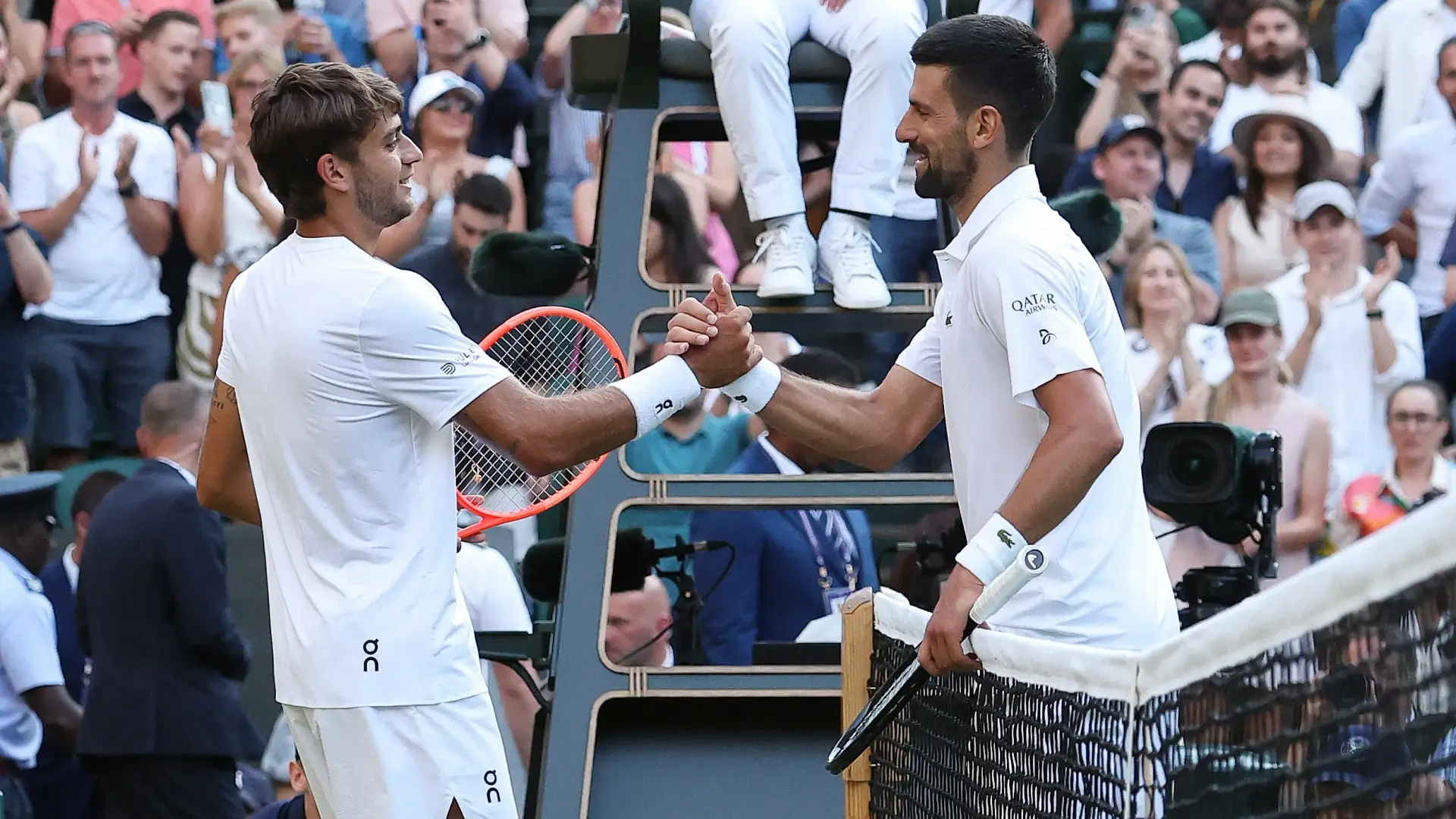 واصل النجم الصربي نوفاك ديوكوفيتش مسيرته التاريخية في بطولة ويمبلدون للتنس 2025، بعدما حسم مواجهة صعبة أمام الإيطالي فلافيو كوبولي، ليبلغ نصف نهائي منافسات فردي الرجال في البطولة للمرة الـ14 في مسيرته، ويضرب موعدًا ناريًا أمام المصنف الأول عالميًا، الإيطالي يانيك سينر.