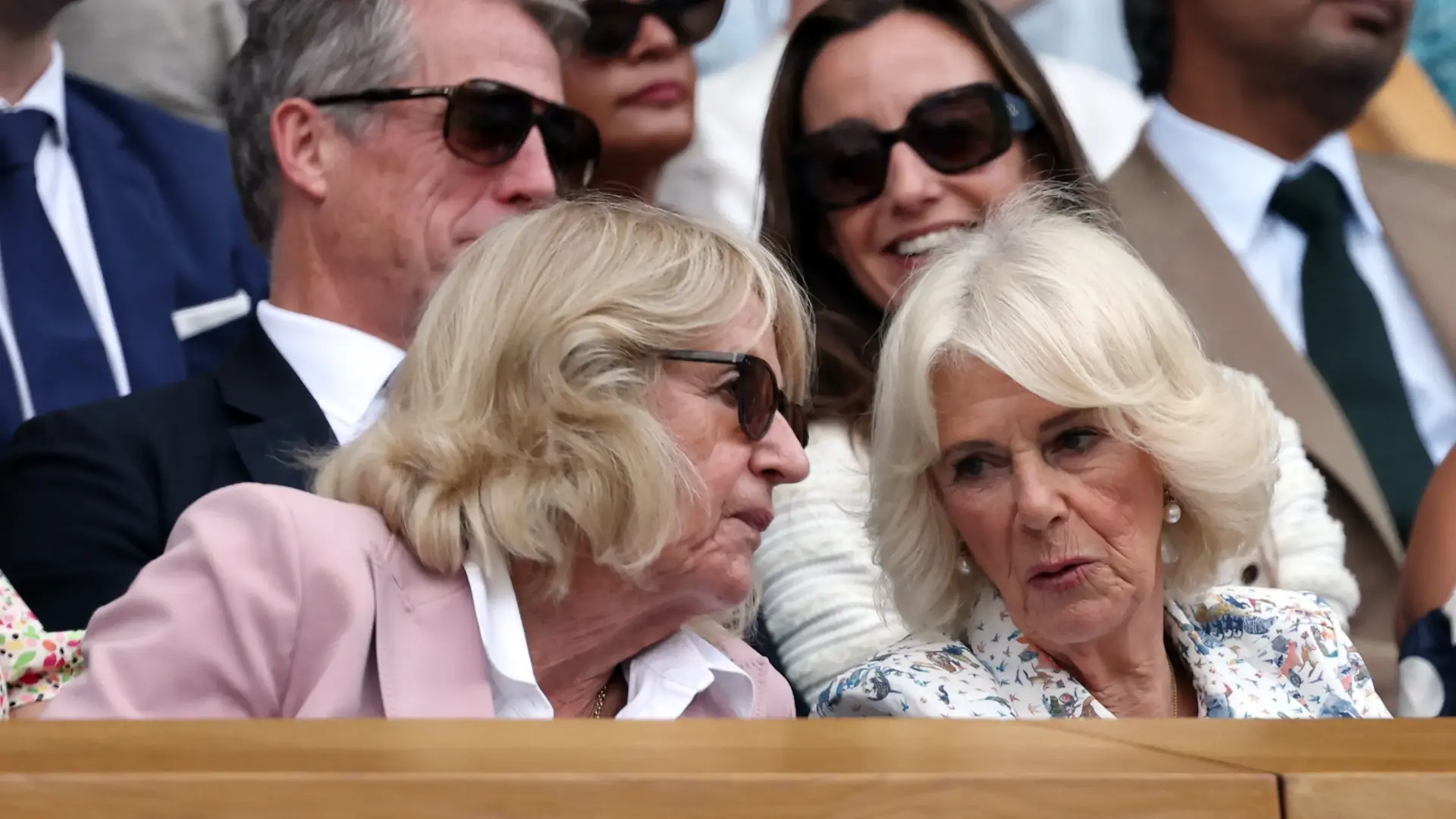 وزارت كاميلا، زوجة الملك تشارلز لثالث، نادي عموم إنجلترا صباح اليوم الأربعاء، حيث التقت برئيسته ديبي جيفنز قبل انطلاق منافسات اليوم في بطولة الجائزة الكبرى (غراند سلام) المقامة على الملاعب العشبية.