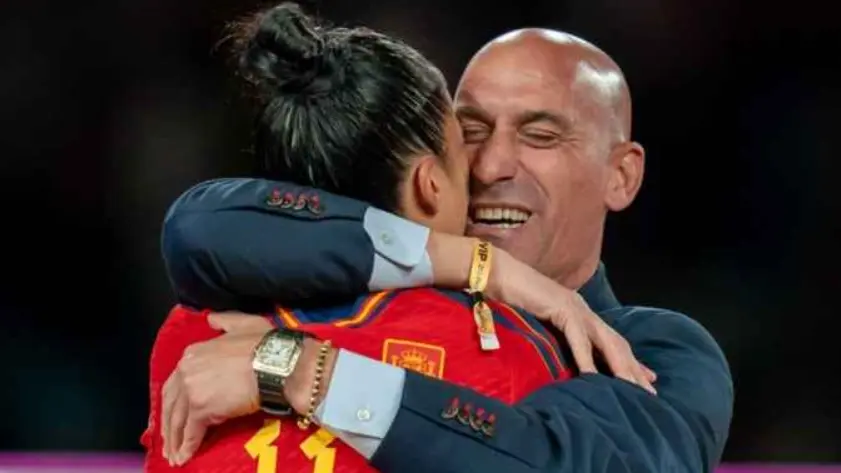 وقبل رئيس الاتحاد الإسباني لكرة القدم لويس روبياليس اللاعبة هيرموسو بعد فوز إسبانيا بكأس العالم للسيدات الأحد الماضي مما أثار مطالبات باستقالته.