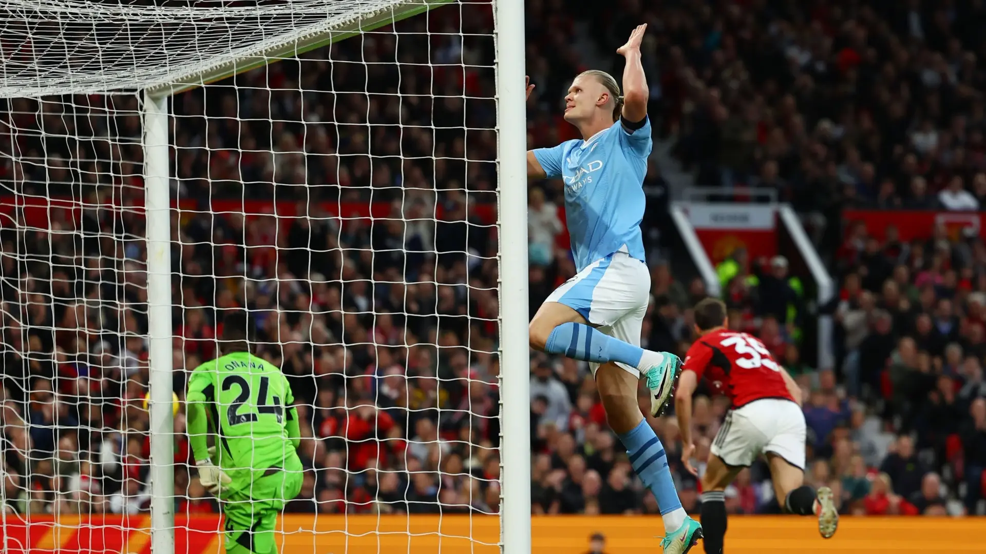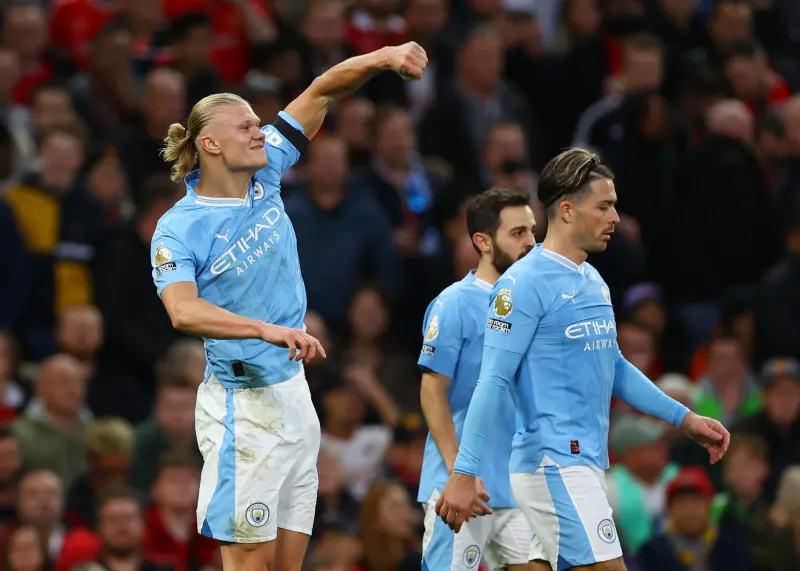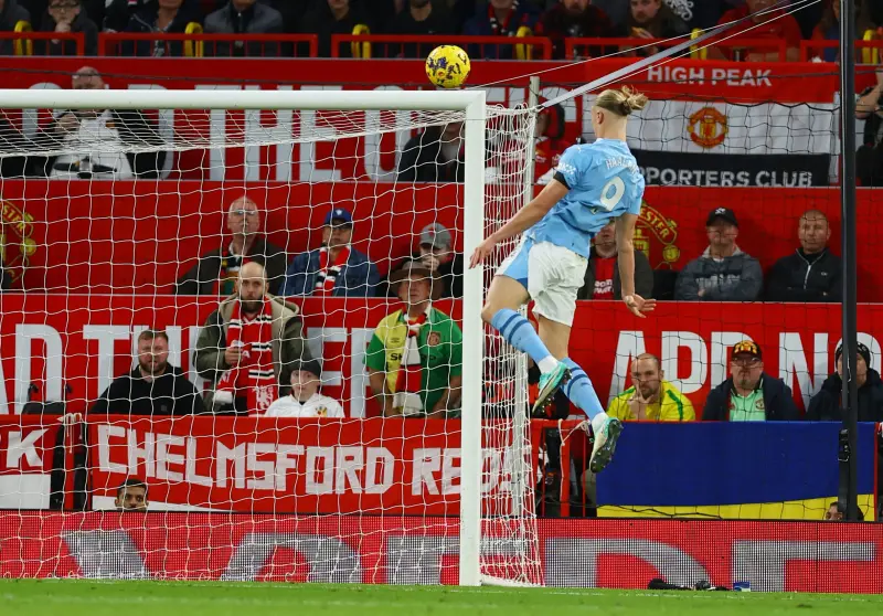 وهز هالاند شباك الغريم التقليدي مانشستر يونايتد في مناسبتين على ملعب "أولد ترافورد"، خلال مواجهة دربي مدينة مانشستر التي زينت قائمة مواجهات الجولة العاشرة من الدوري الإنجليزي الممتاز، والتي تفوق فيها السيتي بثلاثية نظيفة، مساء الأحد.