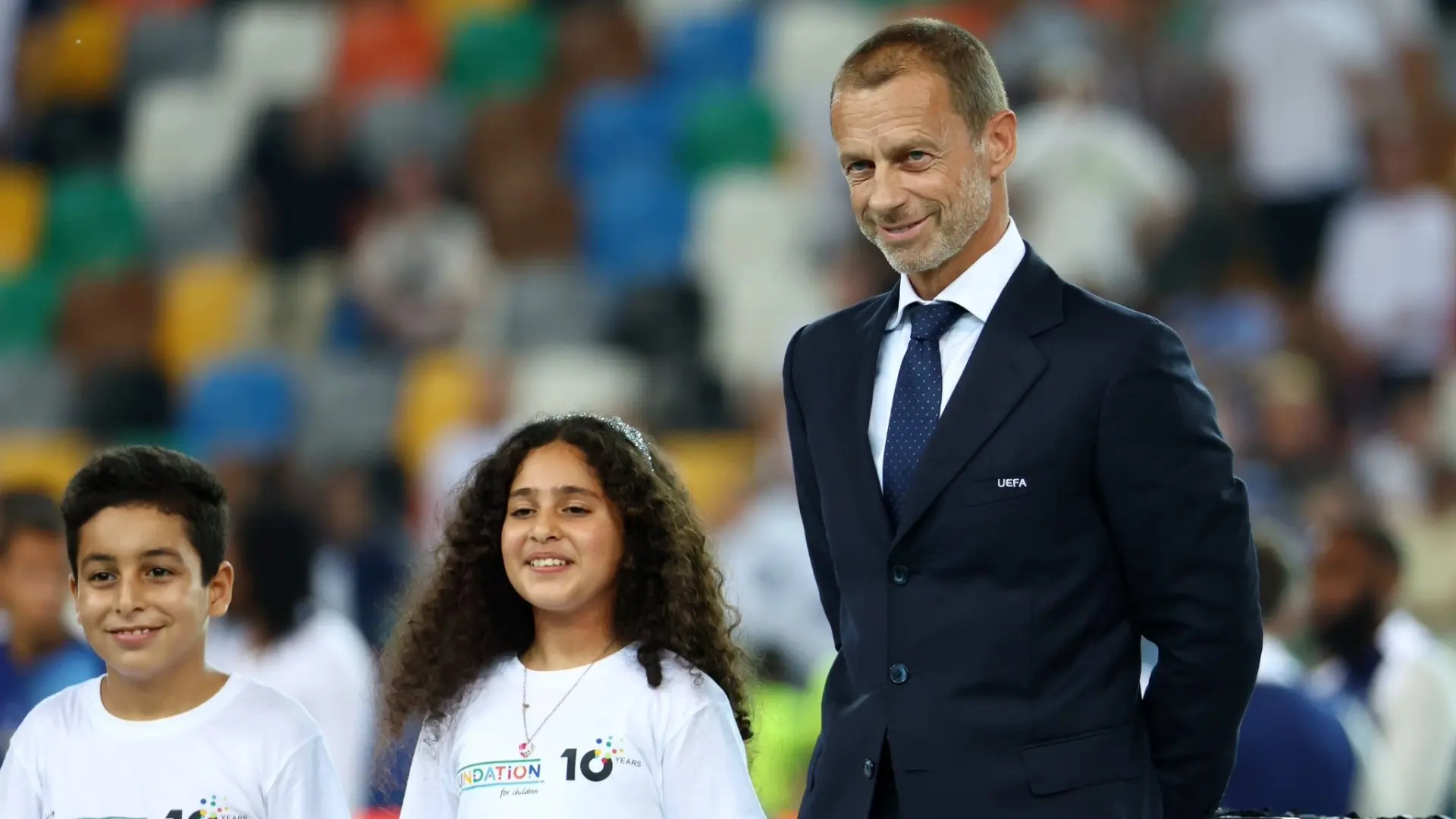 وظهر الطفلان، تالا ومحمد، إلى جانب رئيس الاتحاد الأوروبي لكرة القدم "يويفا" ألكسندر تشيفرين، الذي اصطحبهما إلى داخل الملعب للمشاركة في مراسم تسليم الميداليات بعد المباراة النهائية.