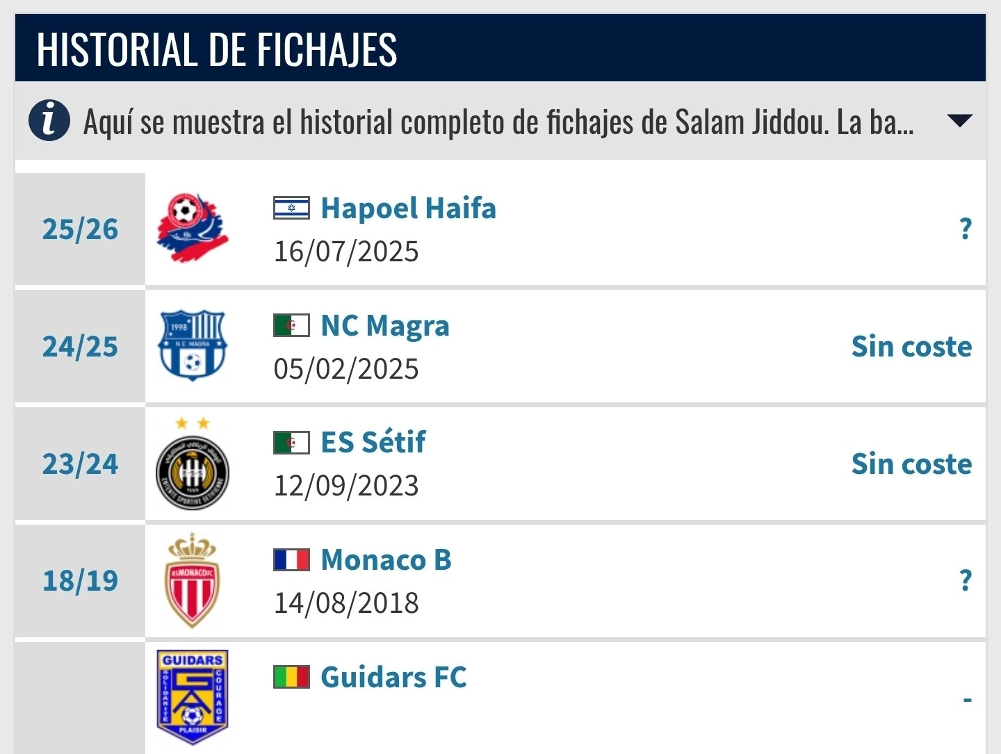 بالبحث في المصادر الجزائرية، لم تتوفر معلومة حول ما إذا كان اللاعب في فترة الانتقال الحر، خصوصا وأنه انتقل إلى نجم مقرة في يناير 2025 بعدما قام بفسخ عقده مع وفاق سطيف.
