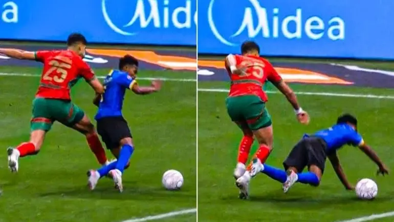 وأشار التحليل التقني الدقيق للقطة إلى أن المهاجم التنزاني قام بما يسمى "السقوط الاستباقي" قبل وصول المدافع إليه، حيث كانت يد ماسينا ممدودة بشكل عرضي لجس الموضع فقط دون التأثير على توازن الخصم.
