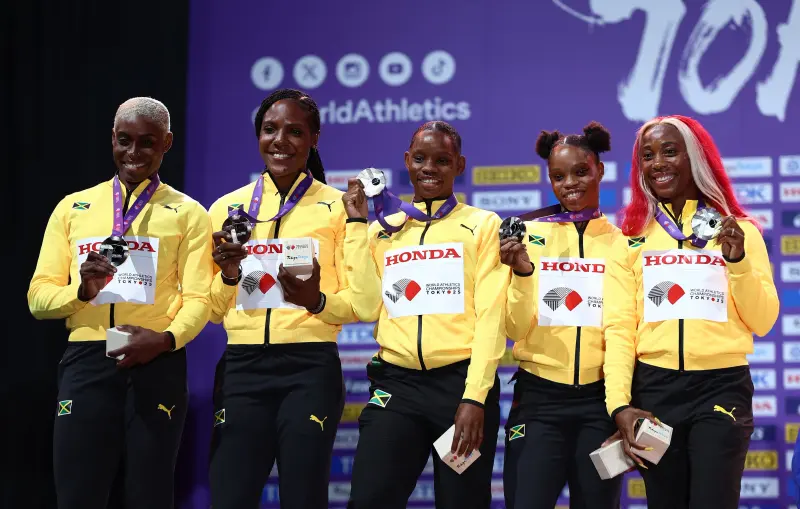 واكتفت جاميكا بالمركز الثاني بزمن 41.79 ثانية في سباق شهد اعتزال فريزر-برايس، التي أنهت مسيرتها العالمية بميداليتها الـ17، مؤكدة: "أنا ممتنة لأنني فعلت ذلك مع فريق شاب صاعد، وآمل أن أكون قد ألهمتهم". أما ألمانيا فجاءت ثالثة بزمن 41.87 ثانية بفضل تألق جينا لوكينكمبر.