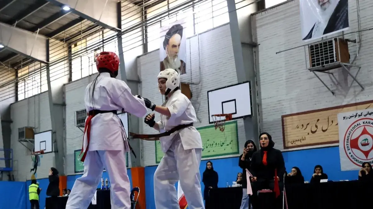 داخل صالة رياضية في جنوب طهران، ترتدي المتباريتان زيّ الكيمونو وتحمي كل منهما رأسها بخوذة، وتتبادلان على حصيرة خاصة بالكاراتيه الضربات تحت أنظار حكمات محجبات وسط تشجيع جمهور من الإناث حصرا.