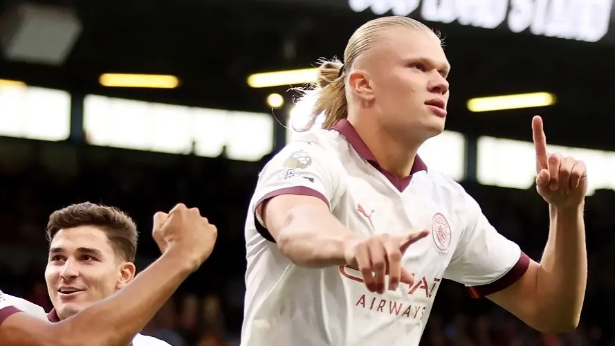 وشهدت الجولة الأولى من الدوري الإنجليزي الممتاز لكرة القدم تألق نجم نادي مانشستر سيتي إيرلينغ هالاند الذي وقع على ثنائية قاد بها فريقه لتحقيق الفوز على بيرنلي الصاعد حديثا لقسم الأضواء.