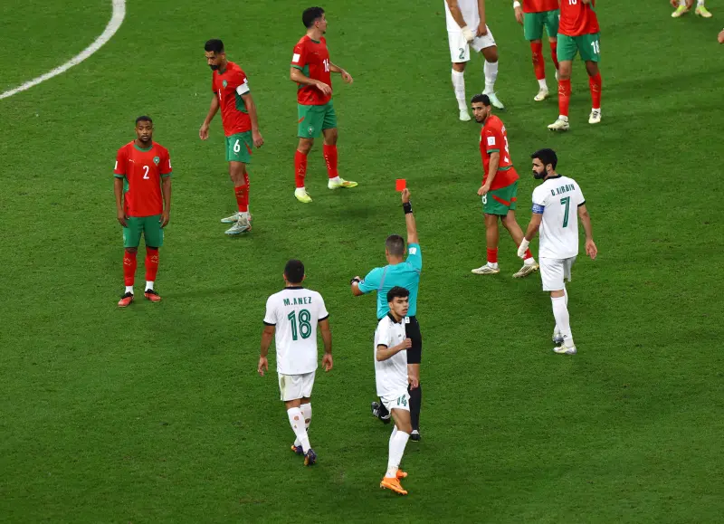 وأنهى المنتخب المغربي المباراة بـ10 لاعبين إثر طرد محمد مفيد في الوقت المحتسب بدل الضائع ببطاقة حمراء مباشرة.