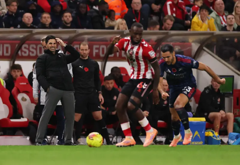 أعرب الإسباني ميكيل أرتيتا، المدير الفني لنادي أرسنال، عن خيبة أمله الكبيرة عقب التعادل المثير أمام مضيفه سندرلاند بنتيجة 2-2، مساء السبت على ملعب "النور"، بعدما خطف البديل برايان بروبي هدف التعادل في الدقيقة 4 من الوقت بدل الضائع، ليحرم "المدفعجية" من فوزٍ ثمين كان في المتناول؛ وذلك ضمن مباريات الجولة 11 من الدوري الإنجليزي الممتاز.