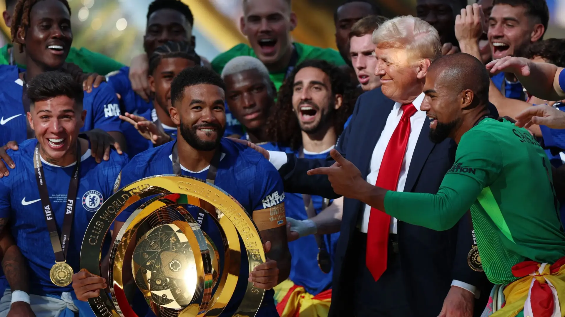 أثار الرئيس الأميركي دونالد ترامب موجة واسعة من الجدل بعد ظهوره المفاجئ واللافت في احتفالات نادي تشيلسي الإنجليزي بالتتويج بلقب كأس العالم للأندية على حساب باريس سان جيرمان، خلال المباراة التي أُقيمت على ملعب "ميتلايف" في نيوجيرسي بحضور أكثر من 80 ألف متفرج.