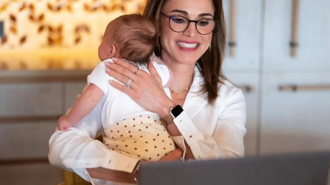 وظهرت الملكة وهي تشارك في اجتماع عبر تقنية الاجتماعات عن بعد "زوم" وهي تحمل بين ذراعيها حفيدتها الأميرة إيمان، ابنة ولي العهد الحسين بن عبدالله وزوجته الأميرة رجوة.