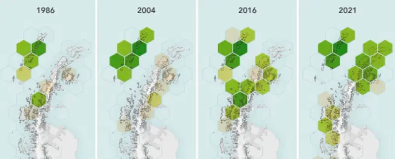 وفي دراسة حديثة، جمع العلماء بيانات من 35 عامًا ترصد تحول القارة القطبية الجنوبية إلى اللون الأخضر بشكل تدريجيّ ولكن ملحوظ.