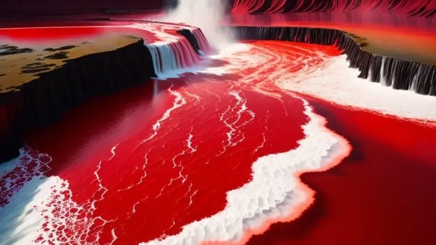وأظهرت الصور ما يبدو أنه شلال ماء بلون أحمر قان، على نحو غير مألوف.