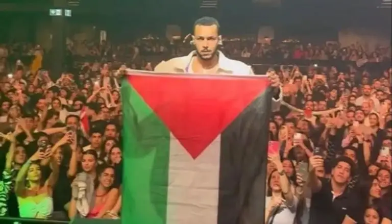 وفي أغلب حفلاته كان يحرص على رفع علم فلسطين وارتداء الكوفية الفلسطينية لإعلان تأييده للأشقاء هناك، وتحدث أكثر من مرة في حفلاته سواء باللغة العربية أو الإنجليزية عن كذب الإعلام الغربي ومحاولة التضليل عن الأحداث في فلسطين.