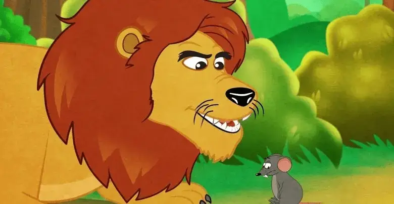 وتدور أحداث القصة الممتعة، حول أسد وفأر يعيشان معاً في غابة، وكان ملك الغابة قوي يخاف منه الكثيرون، وفي ذات يوم، بينما كان الأسد نائمًا تحت شجرة، اقترب منه فأر صغير، ومر من فوق جسده دون أن يشعر الأسد.