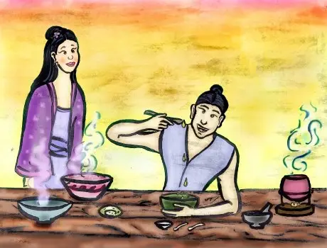 في أول أيام من التجارب، كانت الزوجة تعين زوجها على عمله وتساعده، لكن بعد أسابيع قليلة من المجهود دون الحصول على أي نتيجة، بدأت أن تنزعج وتطلب من زوجها الكف عن هذه التجارب والالتفاف إلى العمل، لأن الأموال اقتربت على النفاد ولا يمكنهما الحصول على المأكل والمشرب بعد ذلك، لكن الزوج لم يستمع إلى زوجته وقرر أن يواصل العمل على تجاربه، حتى يحول التراب إلى ذهب.