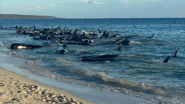 وأوضحت هيئة المتنزهات والحياة البرية في غرب أستراليا أن الحيتان جنحت في المياه الضحلة بالقرب من بلدة دنسبورو الصغيرة، التي تبعد حوالي 250 كيلومترا جنوب بيرث.