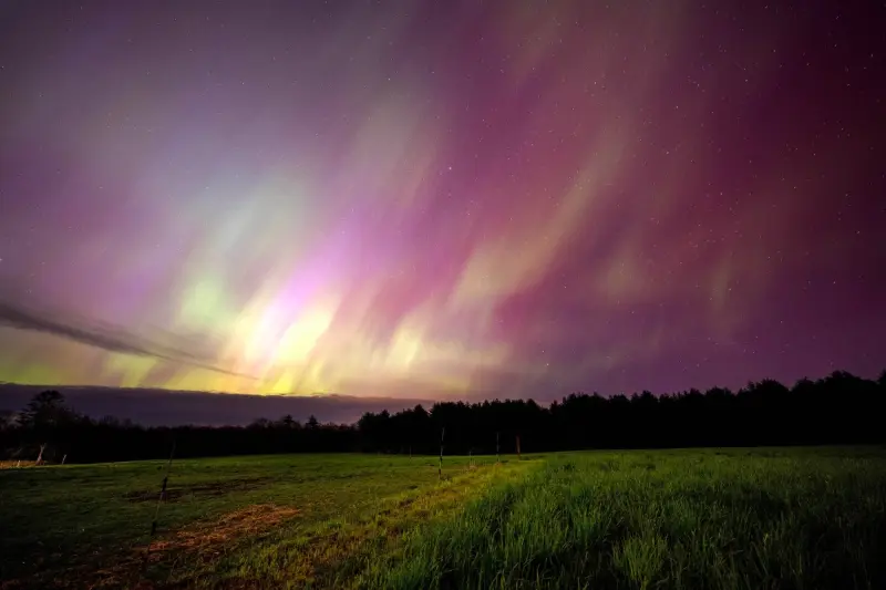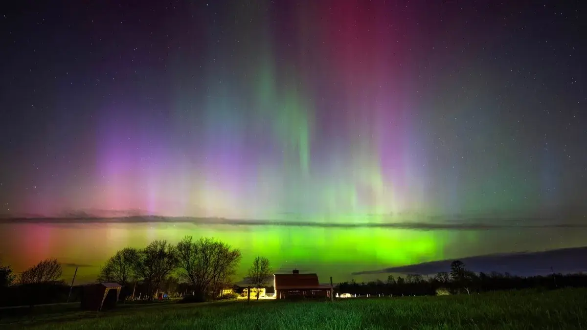 لليلة الثالثة على التوالي، تأمّل سكّان الأرض الأضواء القطبية التي لوّنت السماء بفعل عاصفة شمسية وُصفت بأنها "تاريخية"، في حين بقي التحذير من العواصف الجيومغناطيسية ساري المفعول الاثنين في الولايات المتحدة.