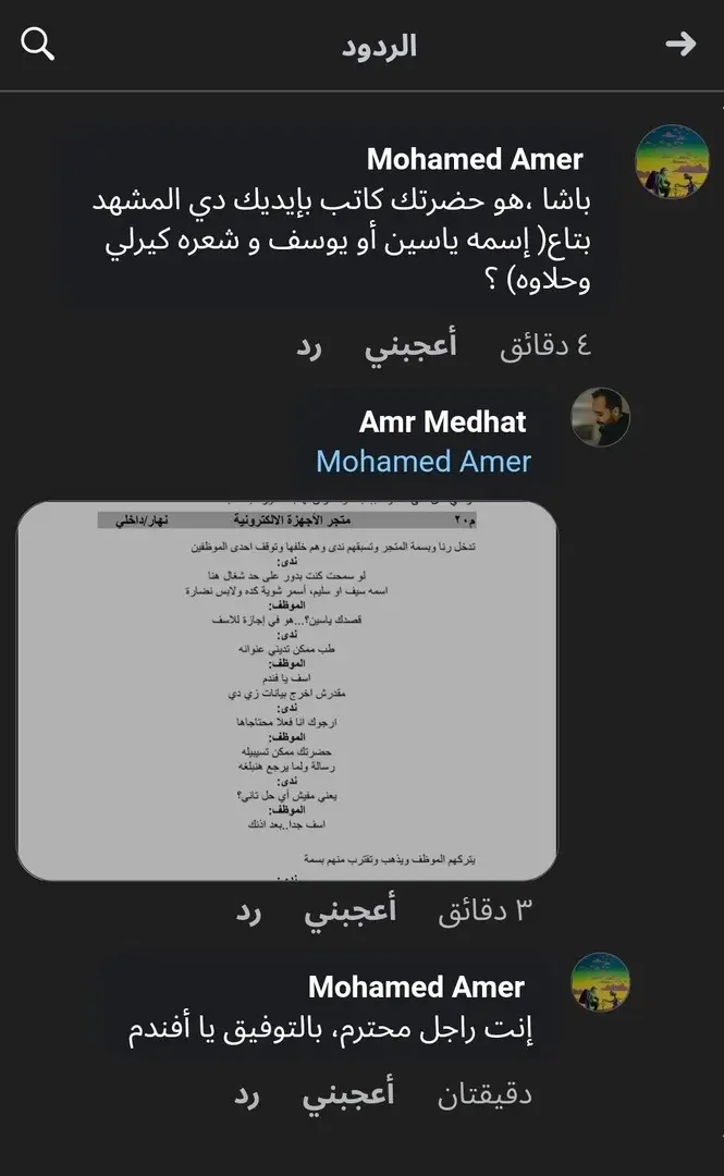 من جهته، علق مؤلف المسلسل عمرو مدحت بصورة تتضمن النص الأصليّ للمشهد الذي أشرف على كتابته، إذ لم يكتب اسم الموظف "يوسف" بل "سيف"، كما استخدم وصف "أسمر شوية كده ولابس نظارة".