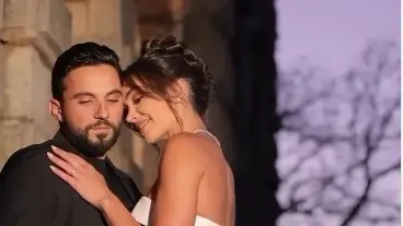 وظهر على العروس مونيك رايلي السعادة وارتدت الخاتم واحتضنت شربل وهي في حالة من السعادة الغامرة.