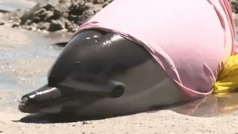 وسجل الحادث مركز الثدييات البحرية الجانحة وهي جماعة غير ربحية مقرها بريجانتين بولاية نيوجيرسي الأميركية وتنقذ وتعيد تأهيل الدلافين والحيتان وغيرها من الثدييات التي تجنح على الشاطئ.