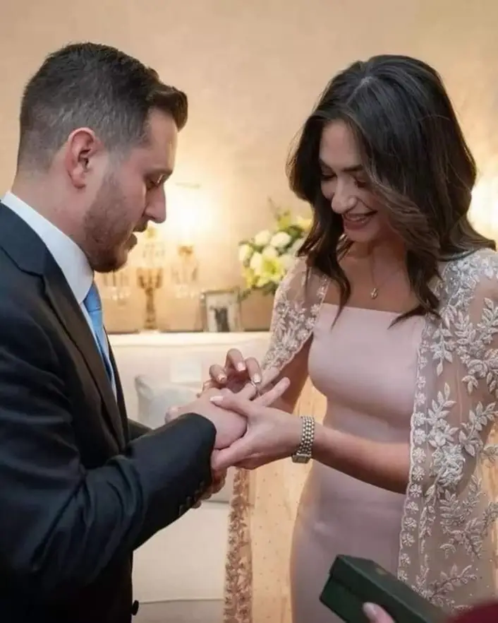 وهنأت الأميرة عالية الحسين شقيقتها بمناسبة زفاف نجلها، ونشرت صورة للعروسين وأرفقتها بتعليق: "ألف مبروك لأختي الحبيبة عائشة بمناسبة زواج ابنها عون".