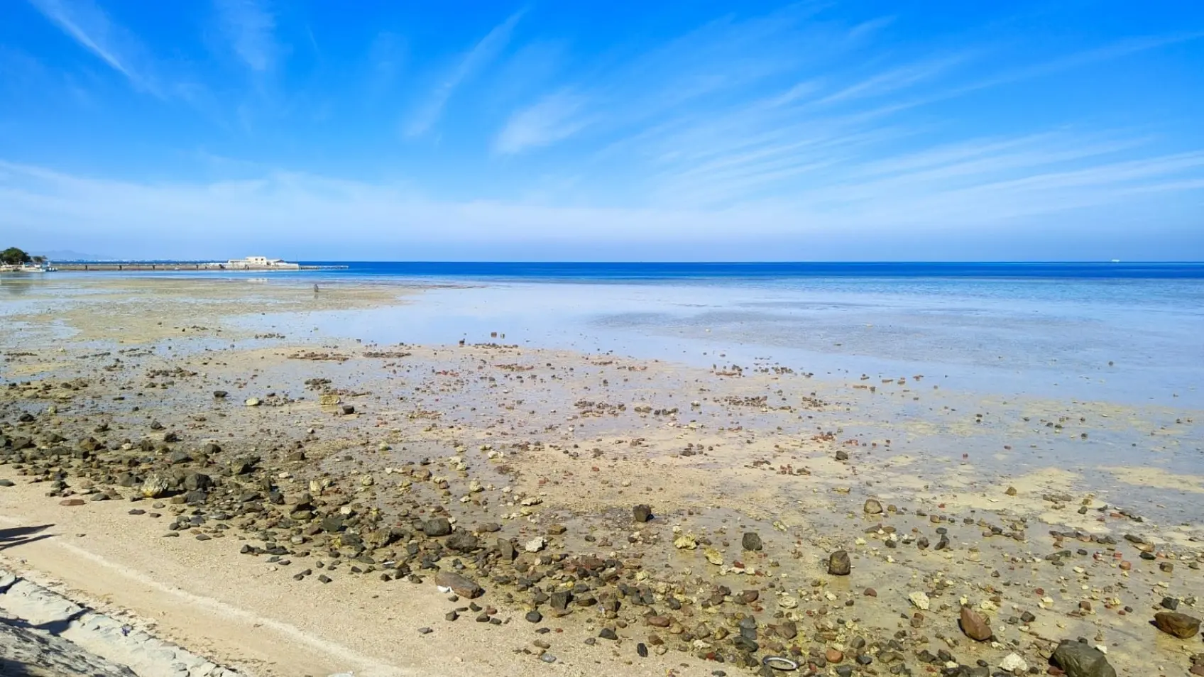 حالة من الذعر سيطرت على السائحين في عدد من المناطق داخل محافظة الغردقة بعد رؤية مشهد اختفاء البحر وظهور مساحات شاسعة من الرمال.
