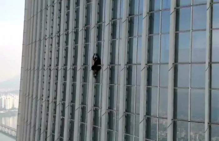 ووفقًا للشرطة وشركة Lotte Corporation، شاهد ضابط أمن الشاب البالغ 24 عامًا عند حوالي الساعة 7:50 من صباح اليوم الاثنين وهو يتسلق الجدار الخارجي للبرج في سيول، فقام بإبلاغ الشرطة ورجال الإطفاء بأن "أجنبيًا يتسلق البرج.