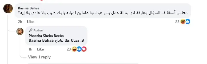 إحدى المتابعات سألتها عن طبيعة التعامل داخل موقع التصوير، قائلة: "آسفة على السؤال وعارفة انها زمالة عمل بس انتوا عاملين لمراته بلوك طيب ولا عادي ولا إيه؟"، لترد فيدرا: "لا، معانا هنا عادي".