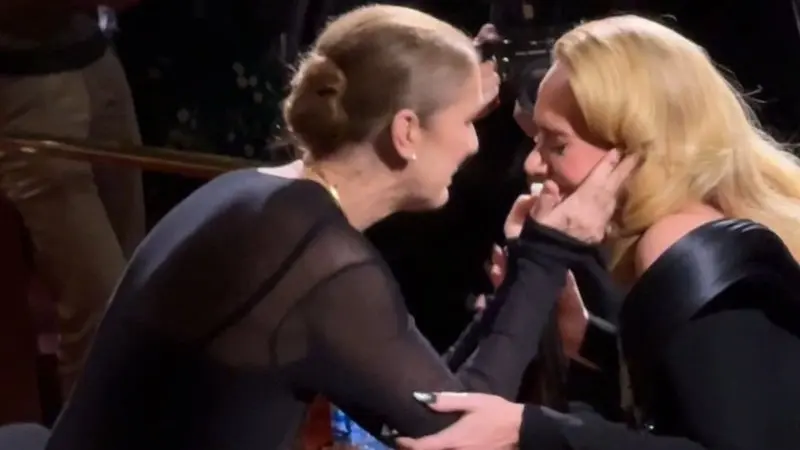 وعلى الفور توجهت أديل إلى ديون وهي في حالة بكاء واضحة بعدما صدمت بوجود النجمة العالمية بين جمهورها، الأمر الذي انعكس أيضًا على سيلين ديون التي بكت هي أيضًا وقبلت يد أديل في دلالة على مدى امتنانها لهذا الاستقبال والحفاوة البالغة في التعبير عن الحب.