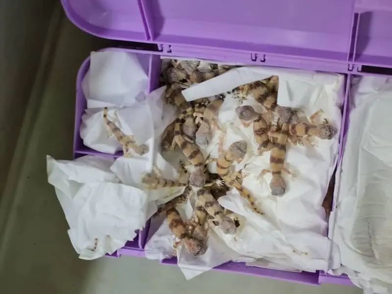 وأضافت الوزارة التي نشرت صوراً للزواحف المُصادرَة أن "بعض الحيوانات ظهر عليها بوضوح أنها تعاني الجفاف لكنها تعافت كلها بصورة جيدة".