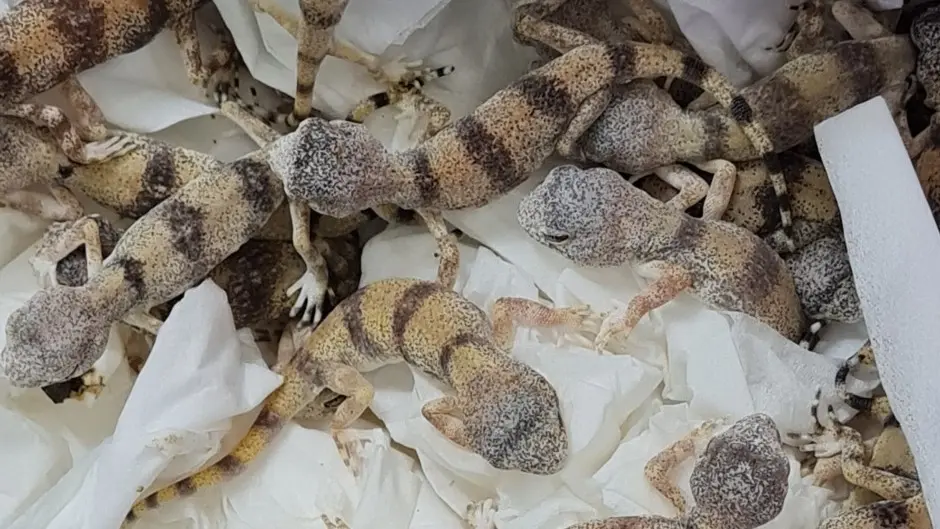 وأضافت الوزارة التي نشرت صوراً للزواحف المُصادرَة أن "بعض الحيوانات ظهر عليها بوضوح أنها تعاني الجفاف لكنها تعافت كلها بصورة جيدة".