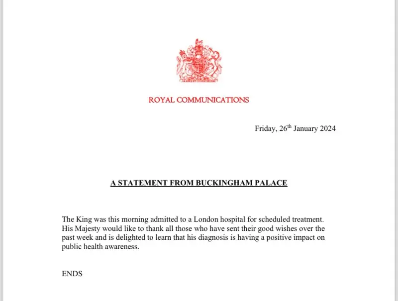 أعلن قصر باكنغهام الجمعة أن ملك بريطانيا تشارلز سعيد لأن أنباء علاجه من تضخم البروستاتا تعزز الوعي العام بهذه المشكلة الصحية، مؤكدا أن تشارلز دخل المستشفى لتلقي العلاج المقرر.