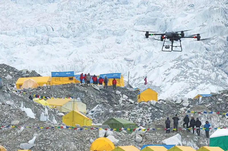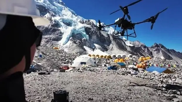 وهذه المسيّرة طورتها شركة (دي.جي.آي) الصناعية الصينية، ويتم تشغيلها من جانب شركة إيرليفت تكنولوجي ومقرها العاصمة النيبالية كاتماندو، وقامت طائرة الشحن المسيّرة المسماة "فلاي كارت 30"، بنقل الإمدادات من قاعدة معسكر التسلق إلى معسكر المرحلة الأولى من رحلة التسلق في الموسم الحالي، وبذلك دعمت جهود المرشدين المحليين المعروفين باسم الشيربا، وقلصت عدد الرحلات عبر شلال خمبو الجليدي القاتل، الذي يعد منذ فترة طويلة واحدا من أكثر القطاعات خطورة على أعلى قمة في العالم.