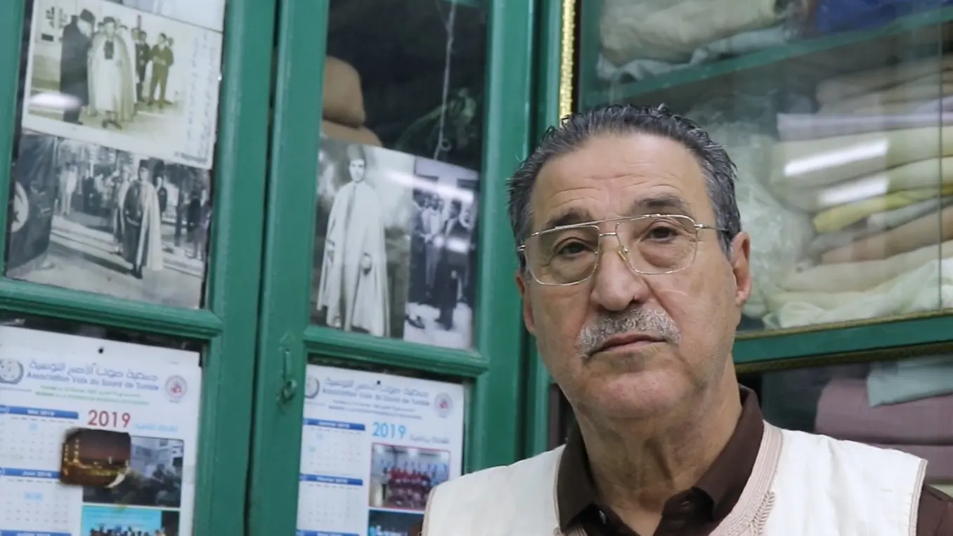 فتحي الشعّار حرفي تونسي مختص في صناعة "الجبّة"، وهي عبارة عن لباس رجالي خارجي فضفاض مفصّل ومخيّط له فتحة مطرّزة مكان الرّقبة وفتحتين مكان الذّراعين، أو كما تكنّى مهنته في اللهجة التونسية بالـ"برانسي" وتشتقّ من كلمة (بَرنُوس)، وهو لباس تونسي تقليدي شتوي يوضع كمعطف يغطي الأكتاف ويسدل على كامل الجسم، يدير العم فتحي محلاّ لصنع الألبسة التقليدية بسوق الصوف.