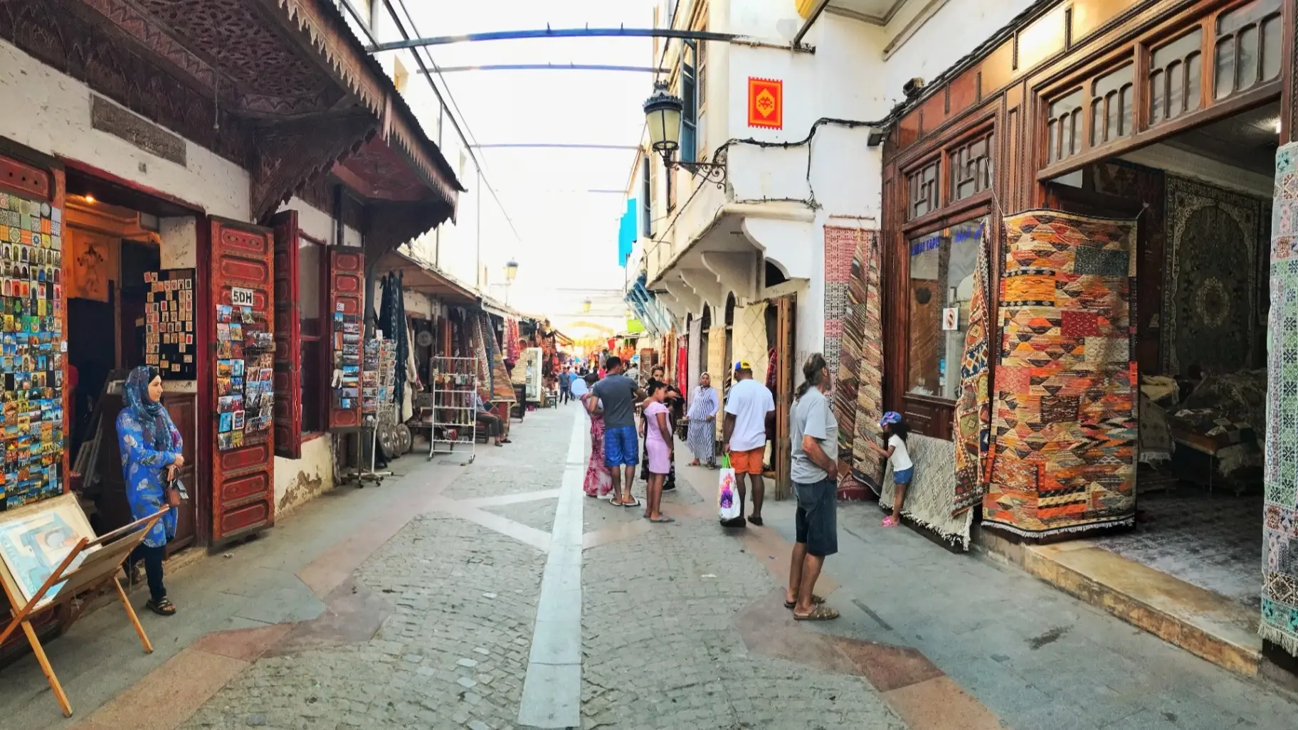 أما أشهر المعروضات في الشارع فهي السجاد المغربي بكل أشكاله. كما تنتشر بالشارع محلات الأزياء المغربية التقليدية وتعد الأكثر إقبالا من قبل السياح.