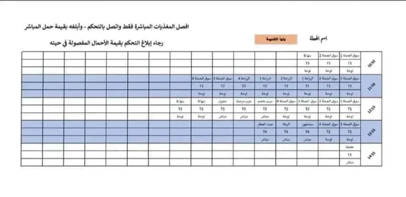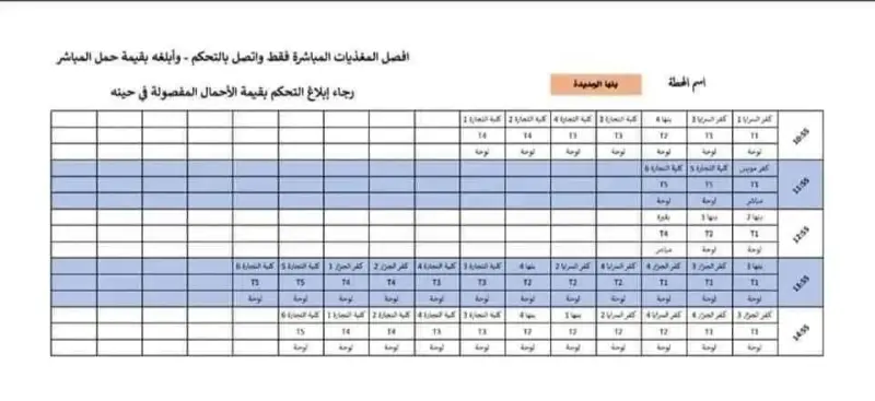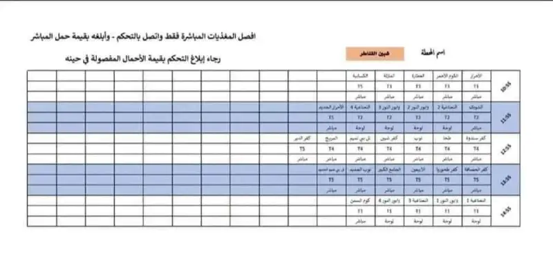 على أن يكون تخفيف الأحمال لمدة ساعتين يوميًا، كما هو موضح في الجدول المرفق في جميع مراكز ومدن وقرى محافظة القليوبية.