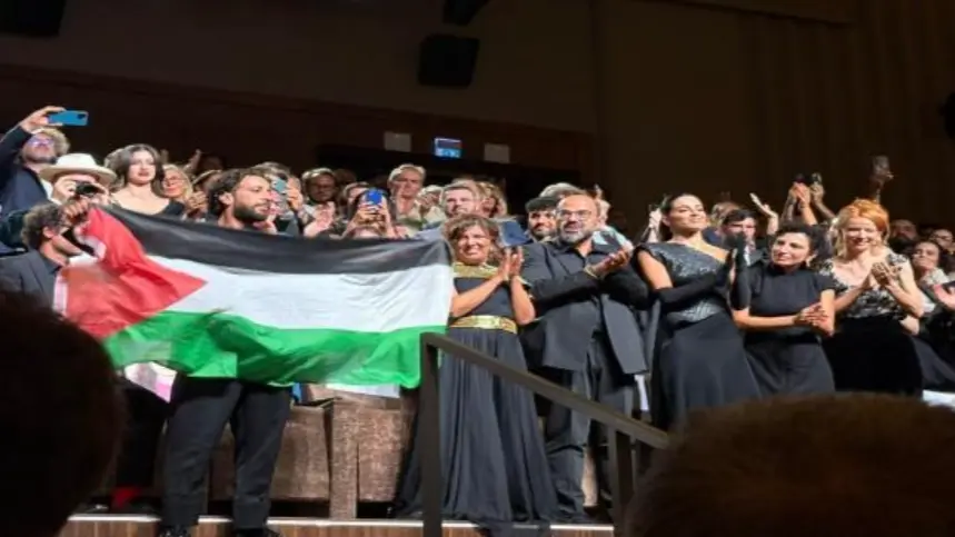 وبعد عرض فيلم "صوت هند رجب" رفع علم فلسطين في مهرجان البندقية السينمائي وسط تصفيق الحضور الحار.