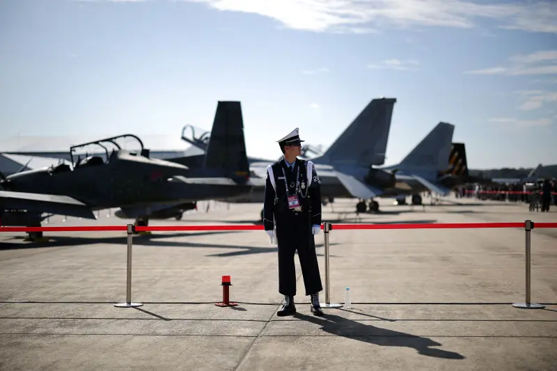 وتضمنت العروض طلعات جوية لطائرة مقاتلة مطورة حديثا من طراز كيه.إف-21.