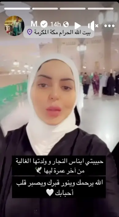 وعبر خاصية الستوري على صفحته في موقع "فيسبوك"، نشر الفنان المصري مقطع الفيديو لإيناس النجار معلّقًا عليه: "حبيبتي إيناس النجار ووالدتها من آخر عمرة ليها، الله يرحمك وينوّر قلبك ويصبّر قلب أحبابك"، معبّرًا عن حزنه الشديد لفقدانها.