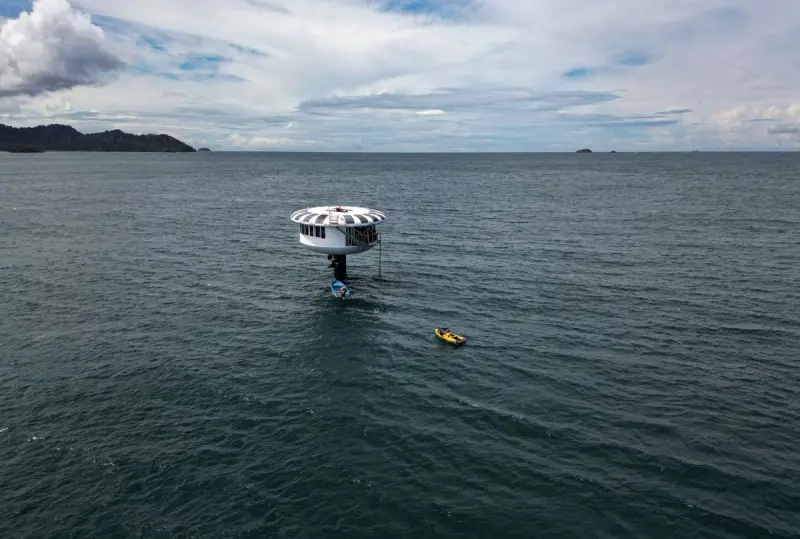 وترتبط الكبسولة تحت الماء بمنزل يقع على أسطوانة معدنية فوق المياه، على بعد 15 دقيقة بالقارب من ساحل بويرتو ليندو، على الساحل الشمالي لبنما.