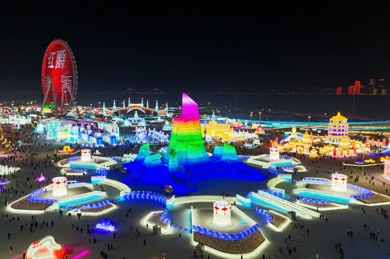افتتحت أكبر حديقة عالمية للجليد والثلج ضمن النسخة الـ27 من مهرجان عالم هاربين للجليد والثلج، في مدينة هاربين الصينية المعروفة باسم "مدينة الجليد"، في مقاطعة هيلونغجيانغ الواقعة شمال شرقي البلاد.