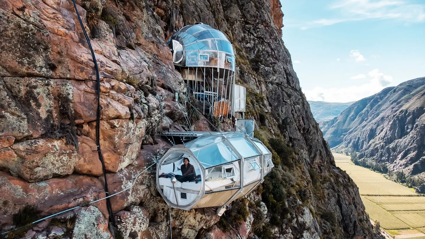 تخيّل أنك تتسلّق منحدر صخري بطول 400 متر، مع حزام أمان للوصول إلى الفندق الذي ستبيت فيه. هذا ما سيحصل في Skylodge Adventure Suites في وادي الإنكا المقدّس في البيرو، أغرب وأخطر فندق في العالم.
