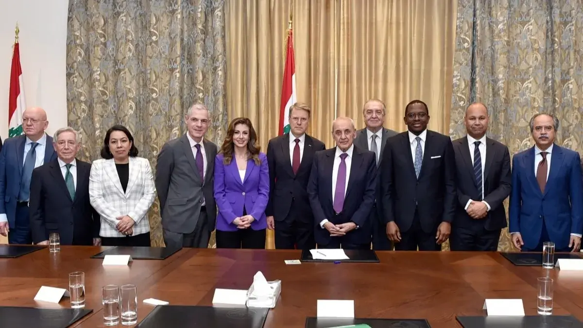 عقد رئيس مجلس النواب اللبناني نبيه بري اجتماعًا مطولًا في مقر عين التينة مع وفد من ممثلي الدول الأعضاء في مجلس الأمن الدولي، ضمن جولة شملت الرؤساء الثلاثة للاطلاع على المستجدات الميدانية ومسار تنفيذ قرار وقف إطلاق النار.