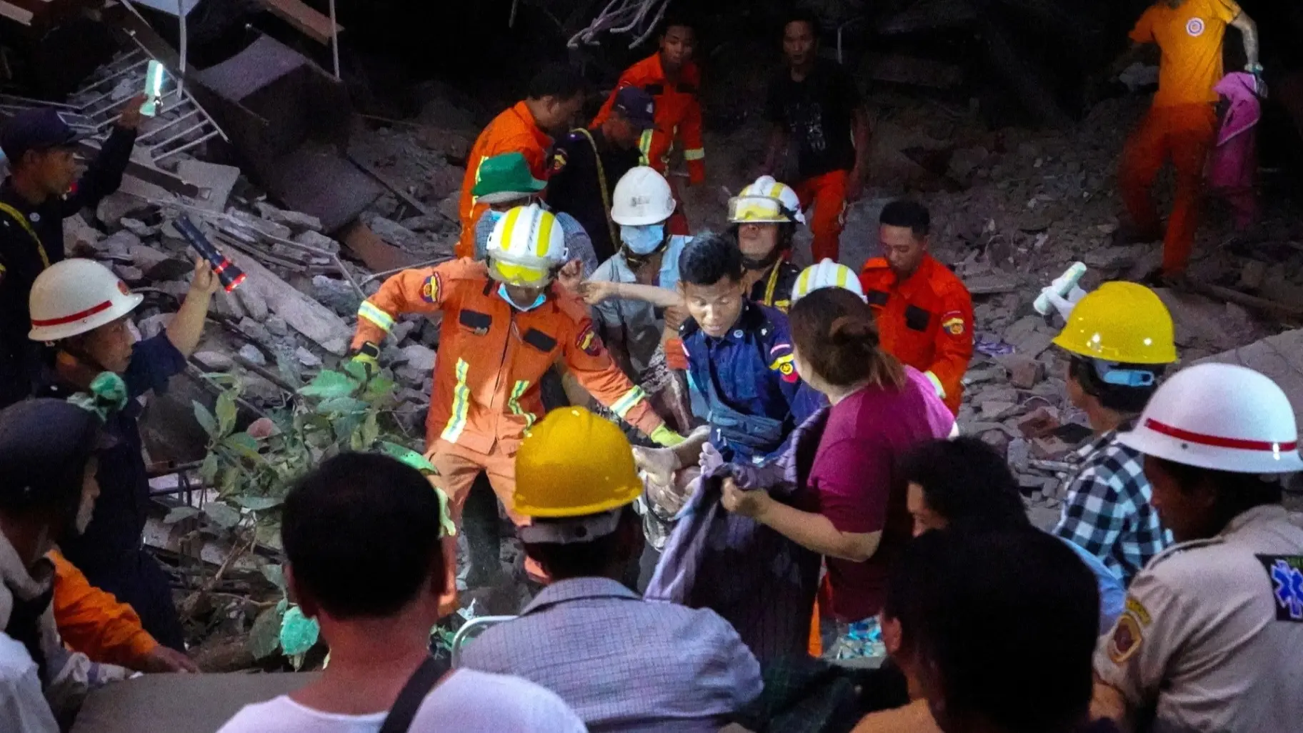 تمكن رجال الإنقاذ السبت من انتشال امرأة على قيد الحياة من تحت أنقاض مجمّع سكني منهار في مدينة ماندالاي، وفق ما شاهد مراسلو وكالة فرانس برس، بعد 30 ساعة من الزلزال المدمر الذي ضرب ميانمار.