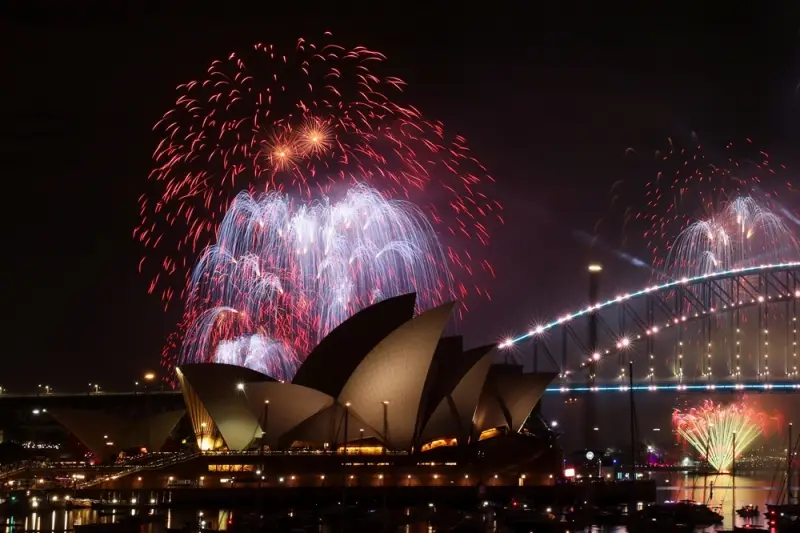 أما مدينة سيدني الأسترالية، التي تُعرف عالميا بعاصمة رأس السنة، فقد أقامت احتفالًا ملونًا لكنه اتسم بالهدوء مقارنة بالأعوام السابقة وذلك عقب الهجوم الإرهابي الذي استهدف فعالية حانوكا على شاطئ بونداي منتصف ديسمبر وأودى بحياة 15 شخصا.
