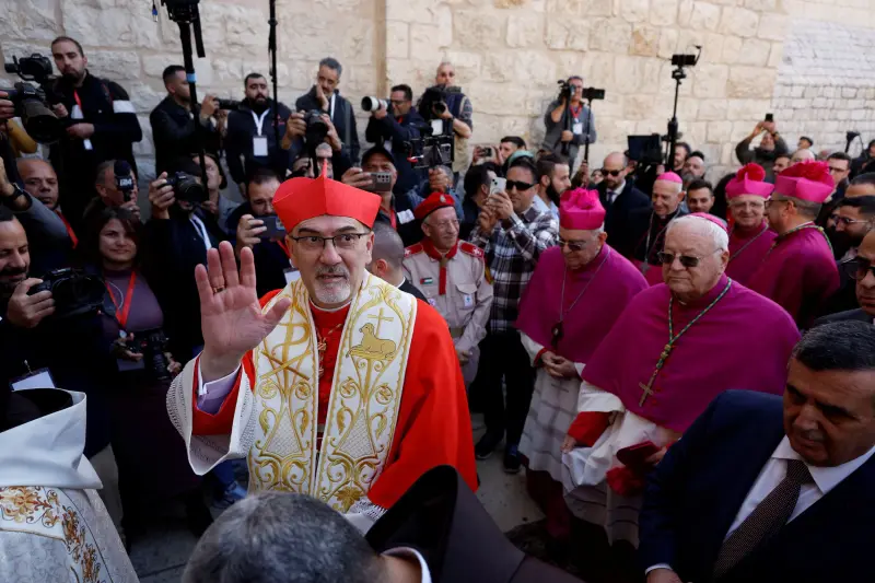 خيّم الثلاثاء هدوء غير مألوف على ساحة المهد في قلب مدينة بيت لحم في جنوب الضفة الغربية فيما انتشرت قوات الأمن الفلسطينية في محيط الكنيسة حيث يعتقد المسيحيون أنها موقع ولادة يسوع المسيح وسط حزن بسبب الحرب في قطاع غزة.