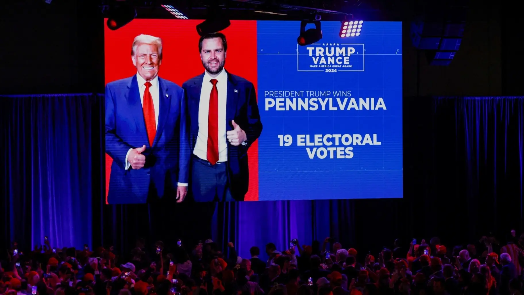 وبحسب التحديثات شبه النهائية من الانتخابات الرئاسية الأميركية لعام 2024، فاز الرئيس السابق بأصوات ولاية بنسلفانيا، التي تمتلك 19 صوتًا في المجمع الانتخابي.