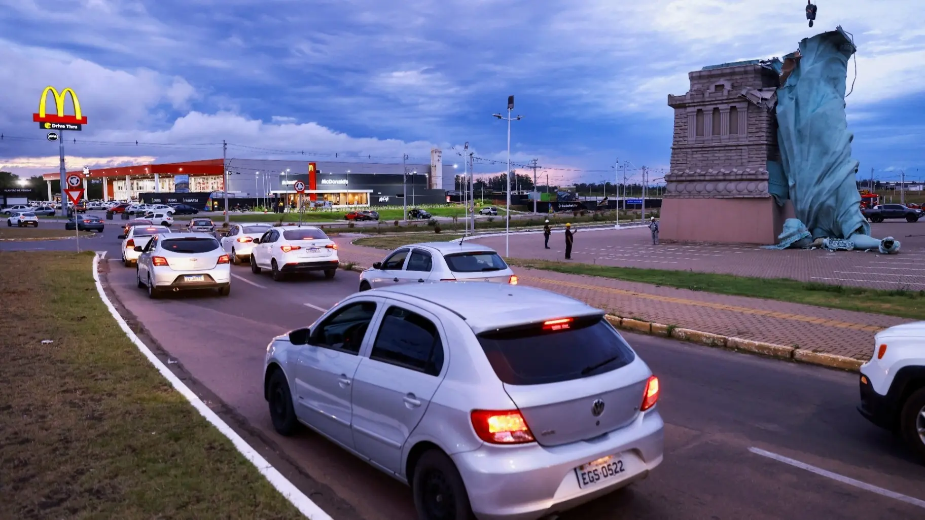 في حادثة أثارت جدلا واسعا على منصات التواصل الاجتماعي، وثق فيديو سقوط تمثال الحرية نسخة طبق الأصل بارتفاع 114 قدما في مدينة غوايبا بولاية ريو غراندي دو سول جنوب البرازيل، حيث أطاحت الرياح العاتية بالتمثال الضخم الذي كان يزين واجهة متجر "هافان".
